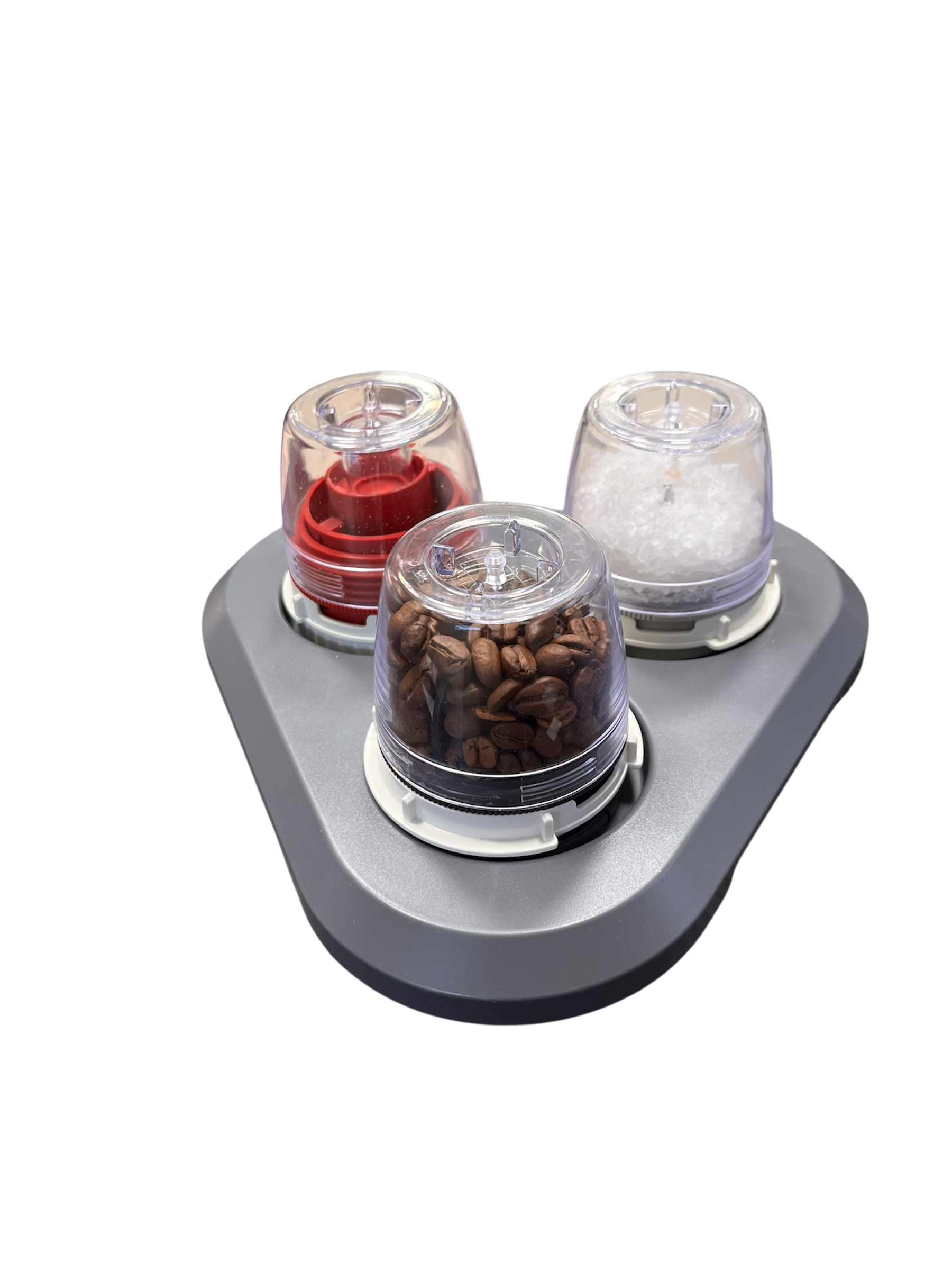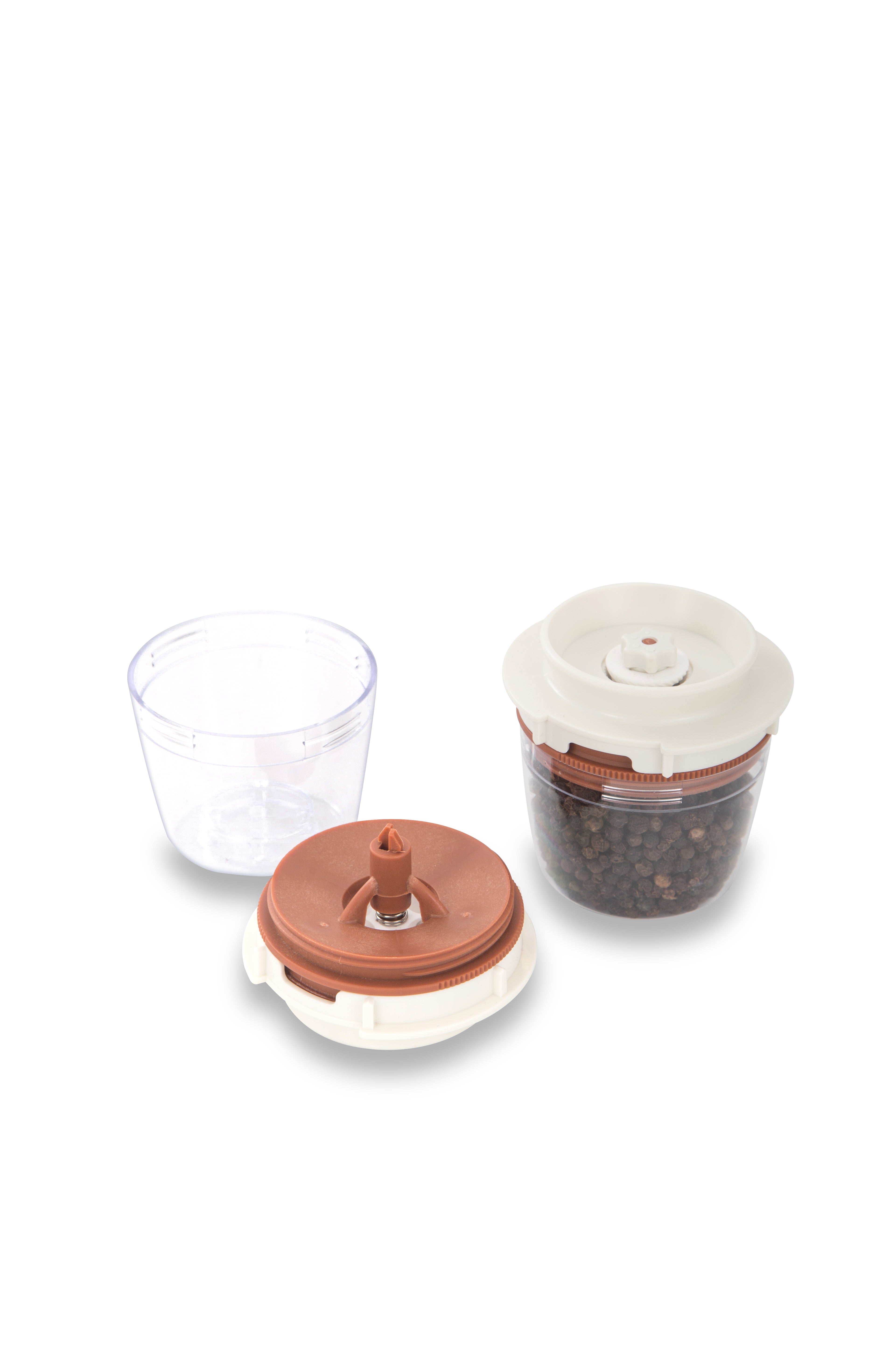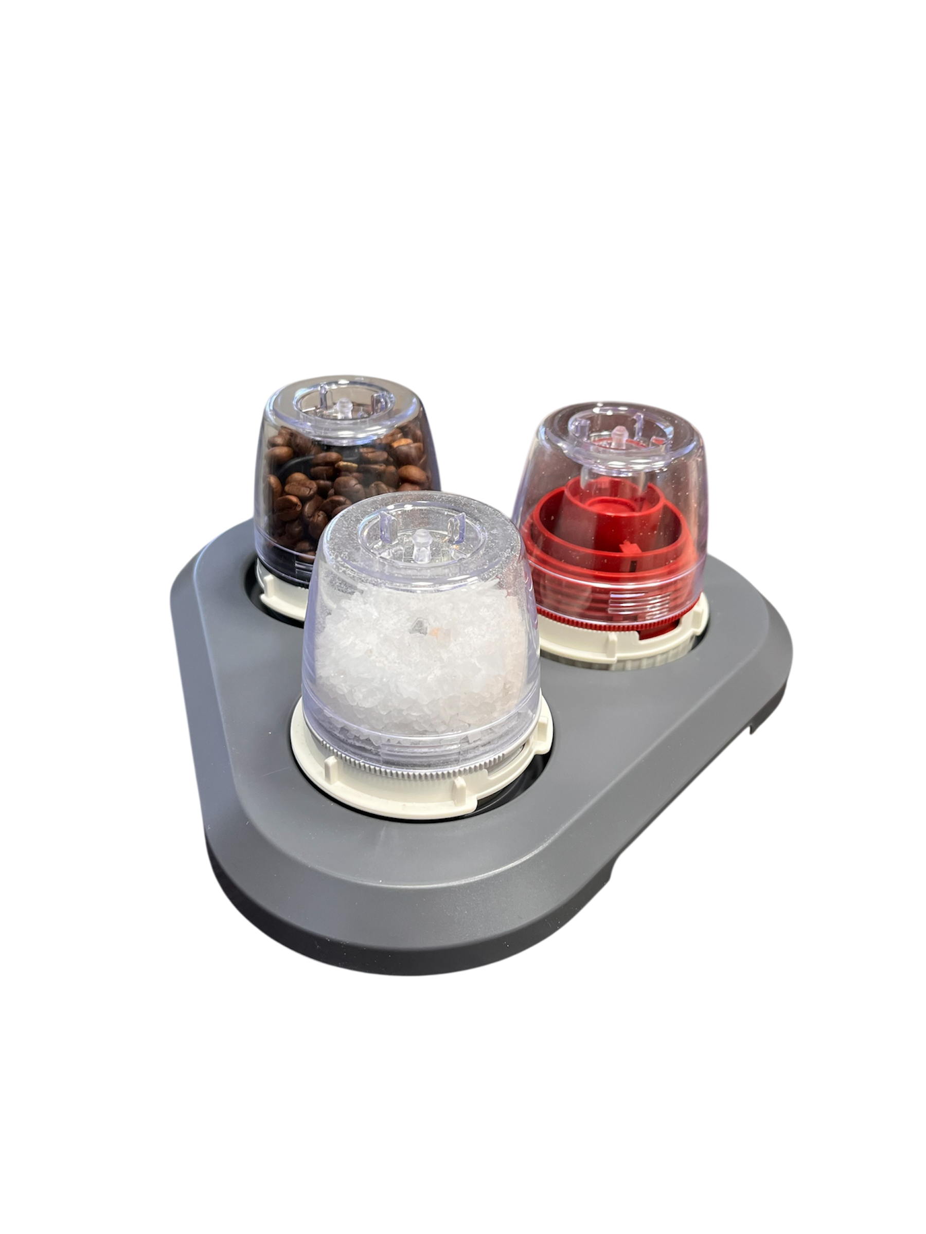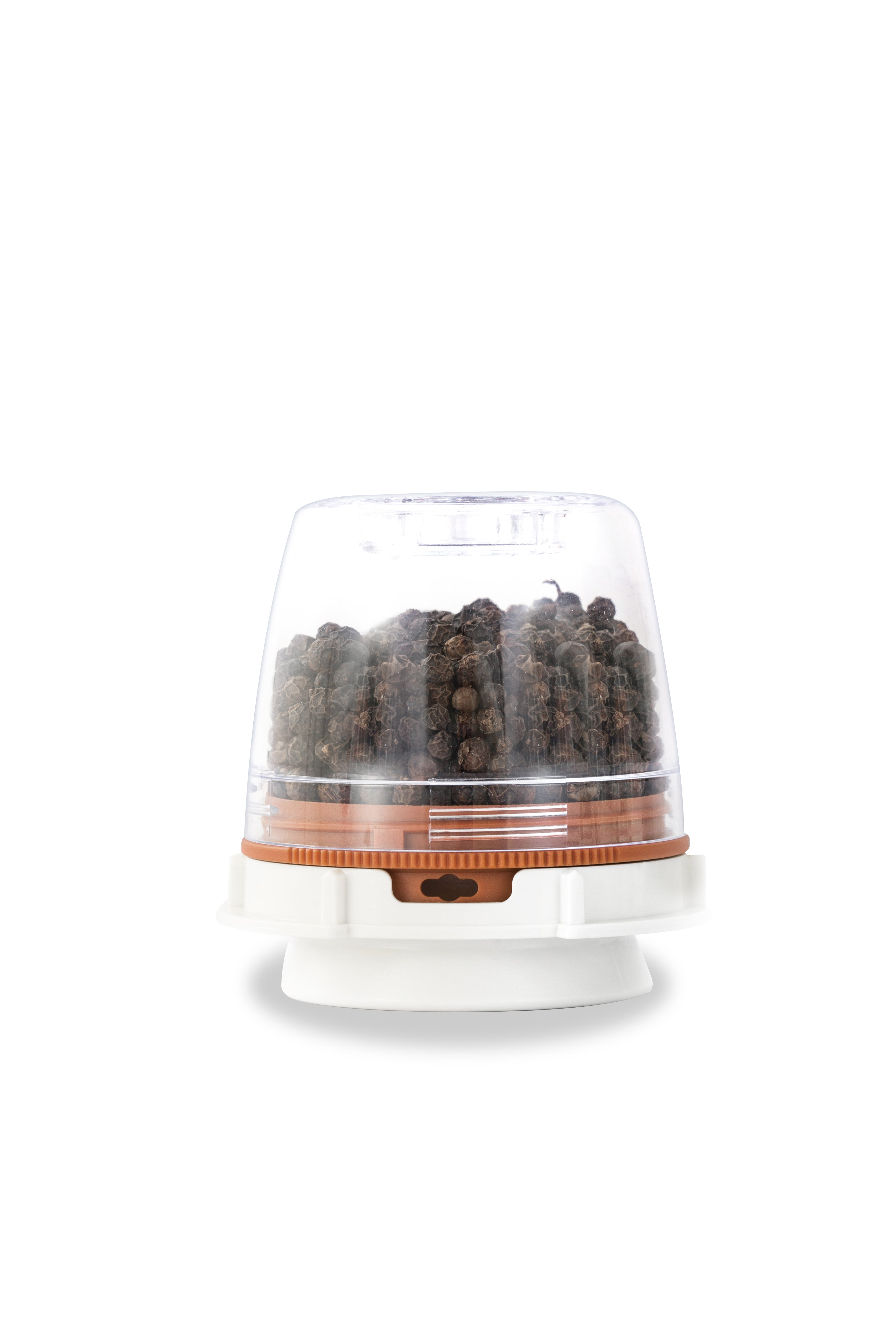 Modułowy system kapsuł Finapods: Każda kapsuła jest dedykowana konkretnej przyprawie – pieprzowi, soli, suszonym ziołom czy większym ziarnom. Dzięki temu przyprawy nie mieszają się i nie tracą swojego profilu smakowego.