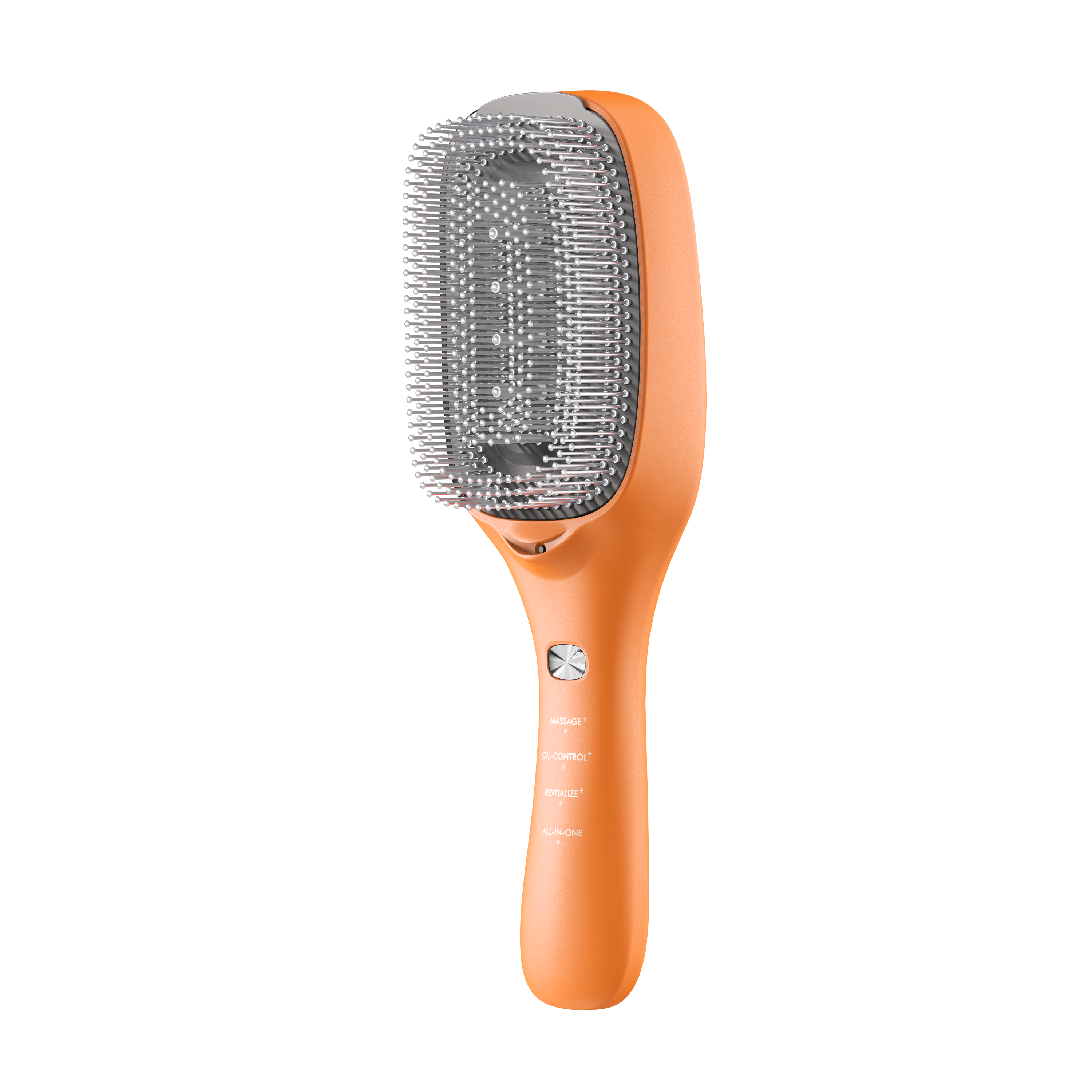 TouchBeauty VITA PRO ma dodatkowo możliwość aplikacji produktów pielęgnacyjnych bezpośrednio przez szczotkę, co pozwala na jednoczesny masaż i dostarczanie składników aktywnych do skóry głowy.