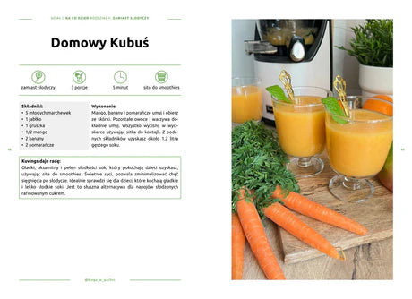 ...i wiele innych kreatywnych zestawień smaków. - Pomysły stworzone we współpracy z pasjonatami zdrowego gotowania i użytkownikami wyciskarek – dzięki temu każdy przepis ma praktyczne zastosowanie w kuchni.