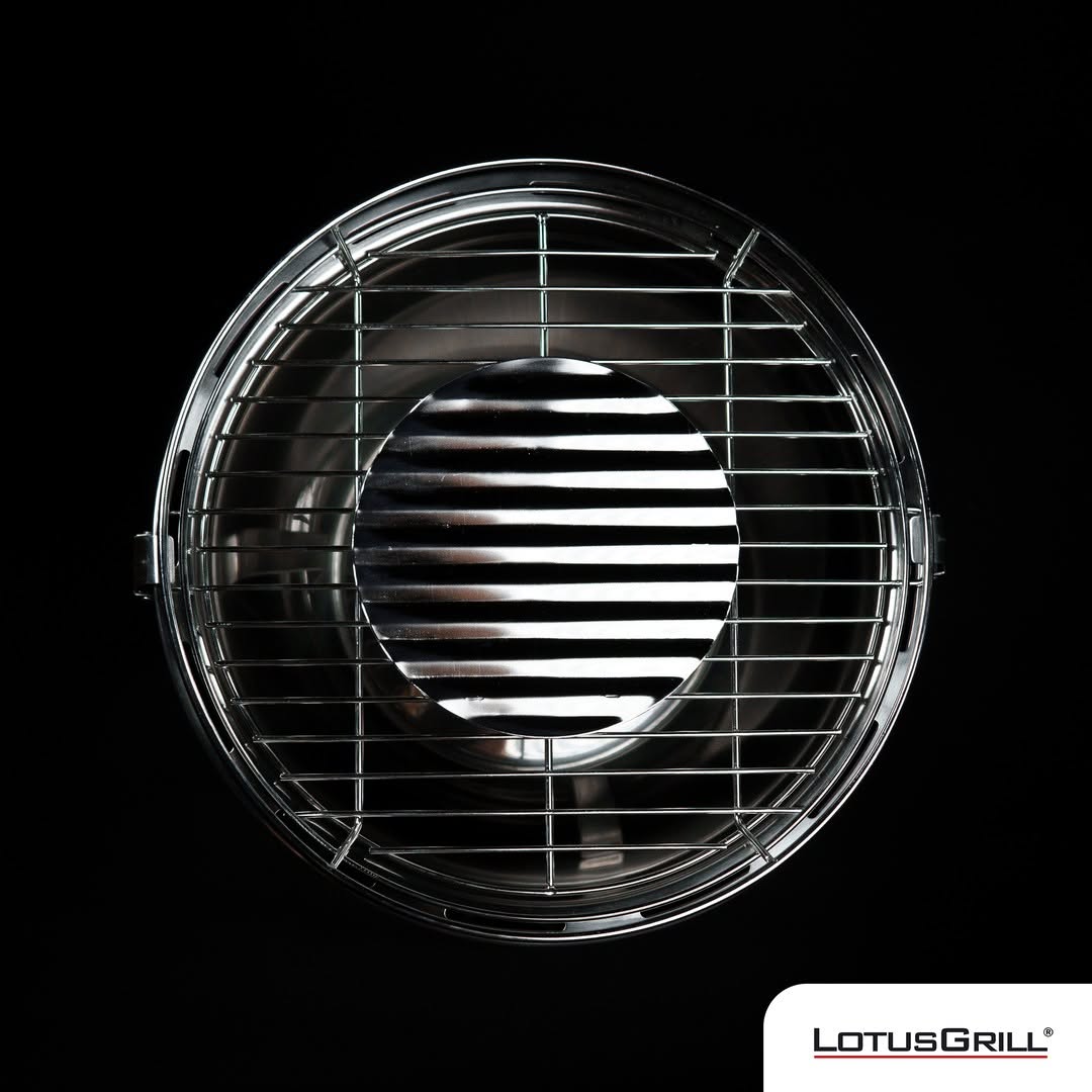 LotusGrill to kompaktowy, bezdymny grill węglowy z wbudowanym wentylatorem, zaprojektowany do bezproblemowego grillowania na balkonie, tarasie, w ogrodzie i w podróży. Dzięki zamkniętemu koszykowi na węgiel i aktywnemu nadmuchowi rozgrzewa się w ok. 3–4 minuty i generuje znacznie mniej dymu niż klasyczny grill, przy zachowaniu typowego, węglowego smaku potraw.